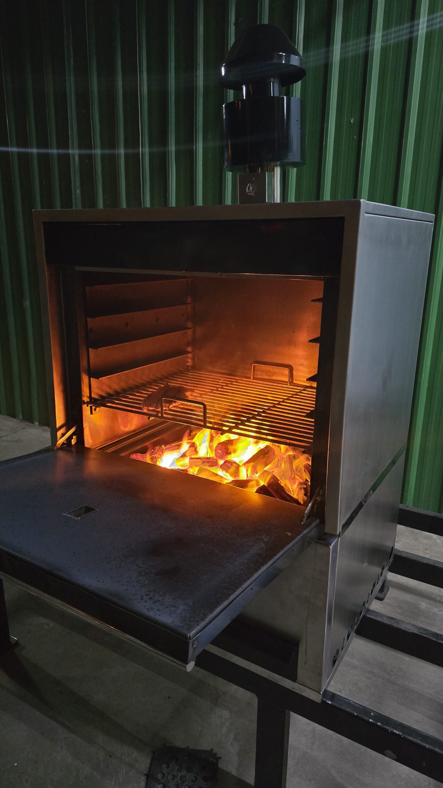 Professional-grade charcoal oven designed for restaurants, steak houses, and BBQ kitchens — combining traditional Japanese grilling style with modern stainless craftsmanship.